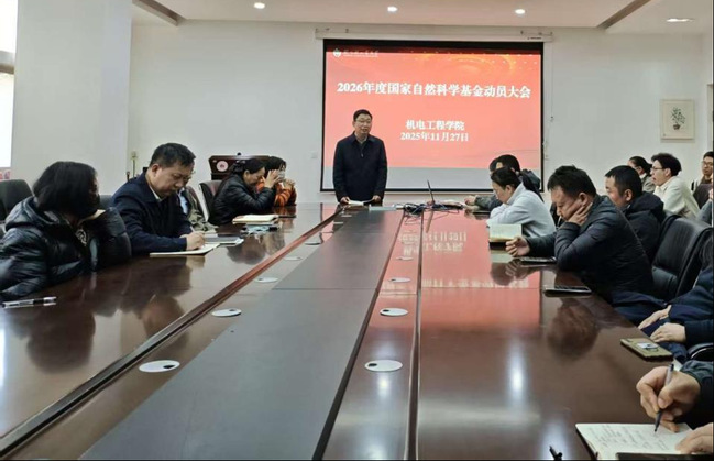 为扎实推进2026年度国家自然科学基金项目申报工作,11月27日下午,机电工程学院在西三楼215会议室召开了国家自然科学基金项目申报启动会。院长李浩教授、省重点实验室主任何文斌教授及拟申报2026年度国家自然科学基金的全体教师参加了此次会议,会议由何文斌主持。