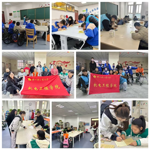 9月至12月期间,机电工程学院每周四下午前往郑州市福利院,开展“拼音启蒙小课堂,暖心陪伴话家常”主题志愿服务活动,用耐心与爱心为福利院的养员们送去温暖。